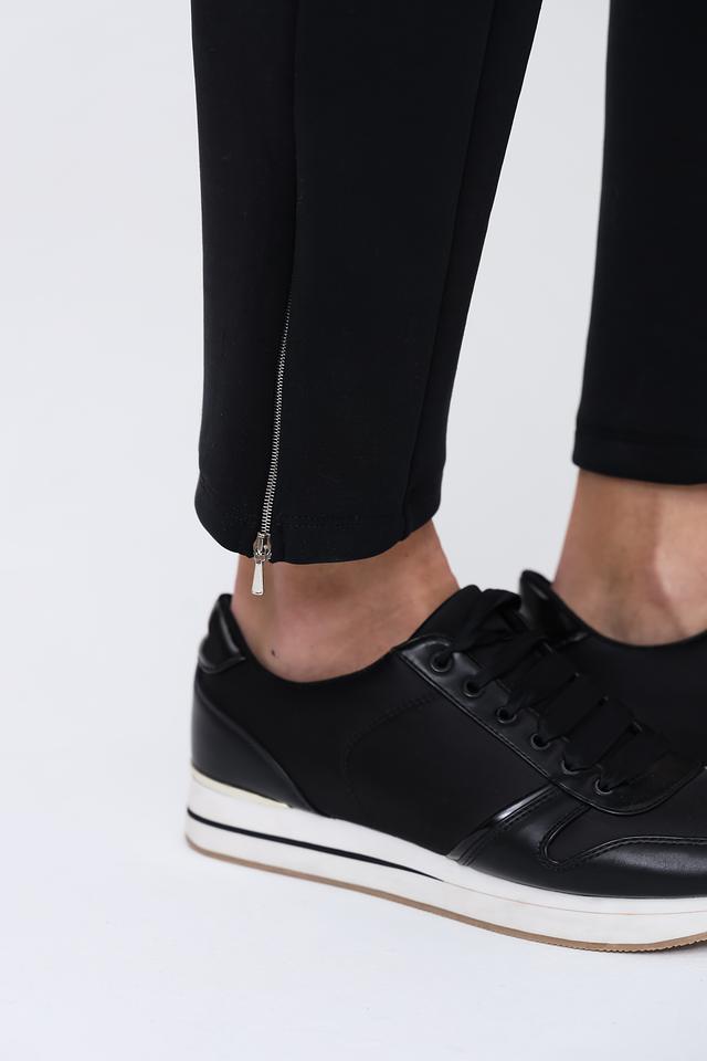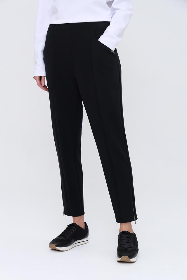 Декоративные элементы в виде молний на щиколотках придают брюкам современный и динамичный вид. Небольшой металлический логотип бренда на кармане добавляет изысканности. Эти брюки идеально подойдут для создания как повседневных, так и более формальных образов.