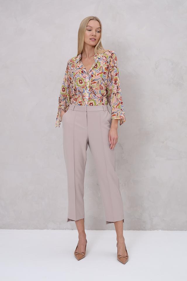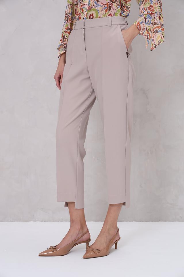 Представляем элегантные брюки от бренда Beatris. Эта модель выполнена в нежном бежевом цвете и имеет укороченную длину, что делает их идеальным выбором для теплого времени года.