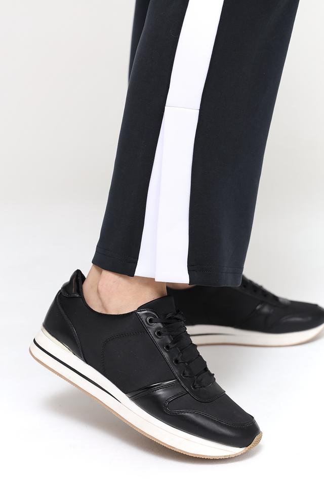 Чёрные брюки Beatris с боковыми полосками – удобная и стильная модель для повседневной носки. Прямой крой и эластичный пояс обеспечивают комфортную посадку, а лаконичный дизайн делает брюки универсальным элементом гардероба. Состав: модал 50%, полиэстер 40%, эластан 10%