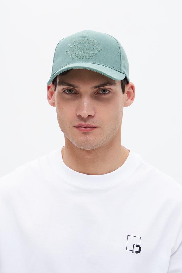 Кепка имеет классический крой с небольшим козырьком и оформлена вышивкой с логотипом бренда Lerros спереди. Мятный цвет придает ей свежий и современный вид.