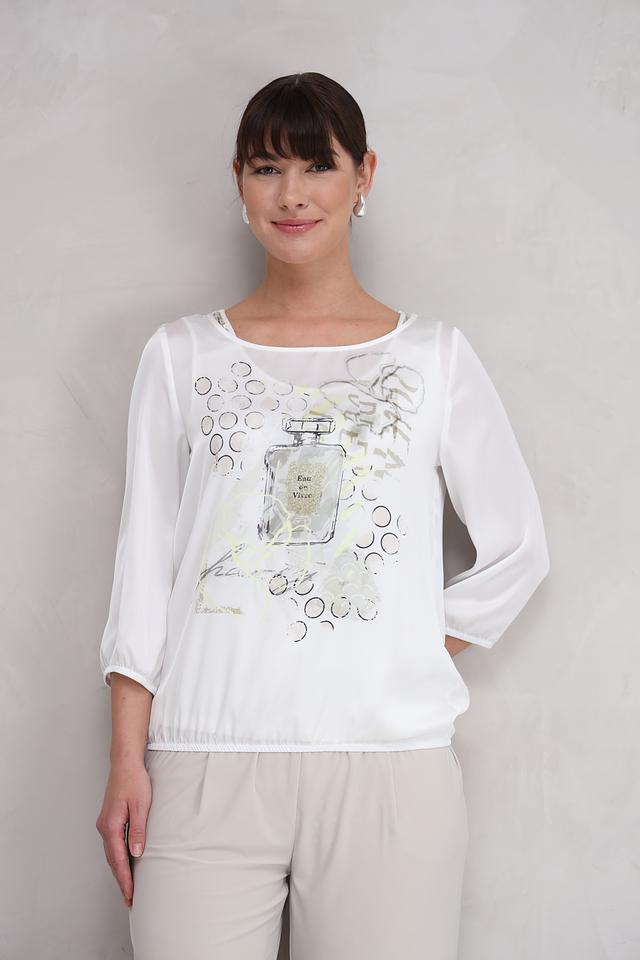 Эта изящная блуза от SE Stenau выполнена в белом цвете и украшена стильным принтом, изображающим флакон духов.