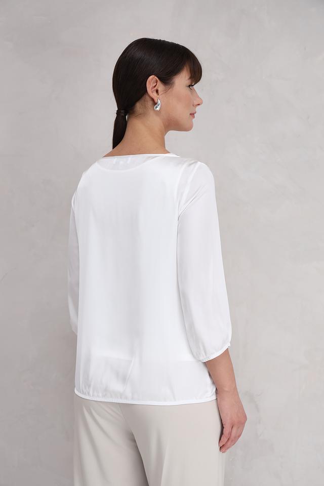 Модель имеет свободный крой, который не сковывает движений, и рукава 3/4 с небольшими сборками по краю. Блуза выполнена из высококачественной вискозы с добавлением эластана, что делает её приятной на ощупь и обеспечивает хорошую посадку по фигуре.