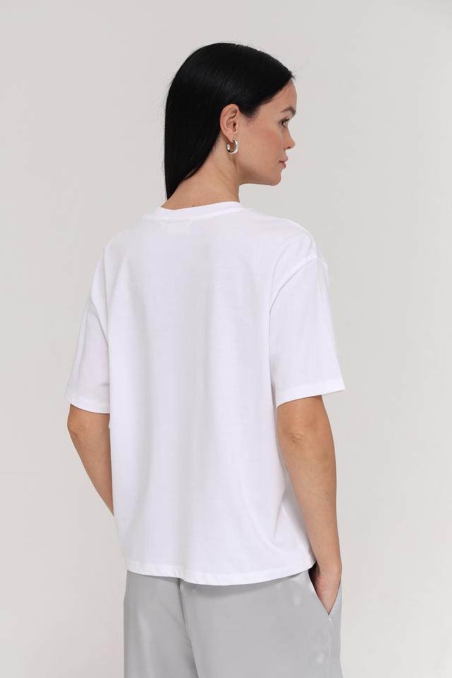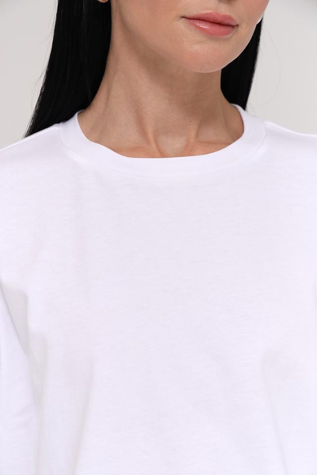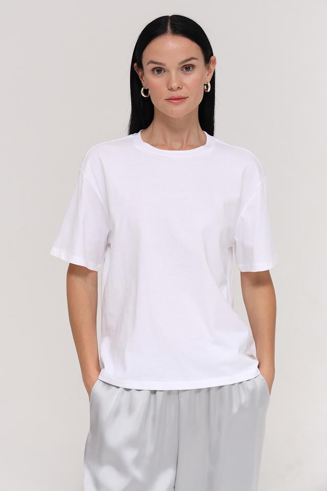Минималистичный дизайн без лишних деталей делает эту футболку универсальной. Она легко сочетается с джинсами, шортами, юбками и брюками, позволяя создавать разнообразные стильные образы. Небольшой логотип бренда на рукаве добавляет изысканности.