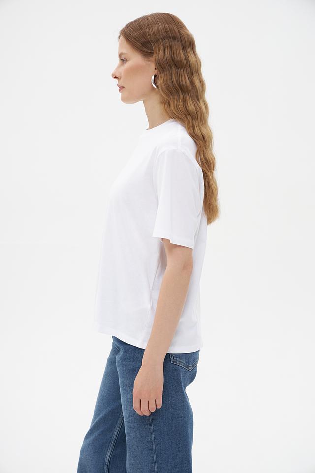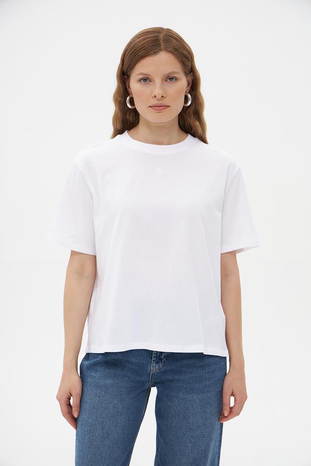 Футболка имеет прямой крой, который подходит для любой фигуры. Короткие рукава делают ее идеальным выбором для теплой погоды. Минималистичный дизайн позволяет сочетать эту футболку с различными элементами одежды, создавая разнообразные образы.