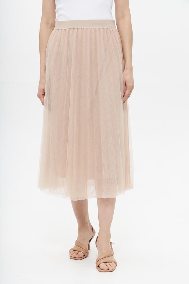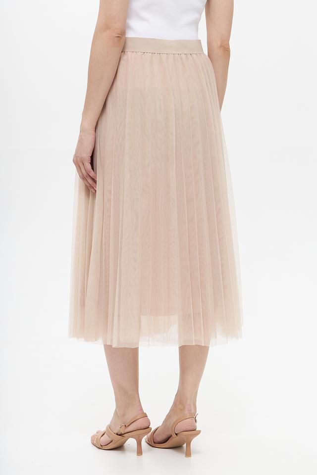 Модель имеет классическую длину миди и фасон плиссе, который придает ей изящный и женственный вид. Бежевый цвет юбки универсален и легко сочетается с различными элементами гардероба.