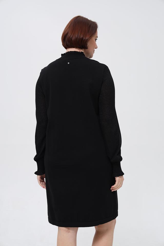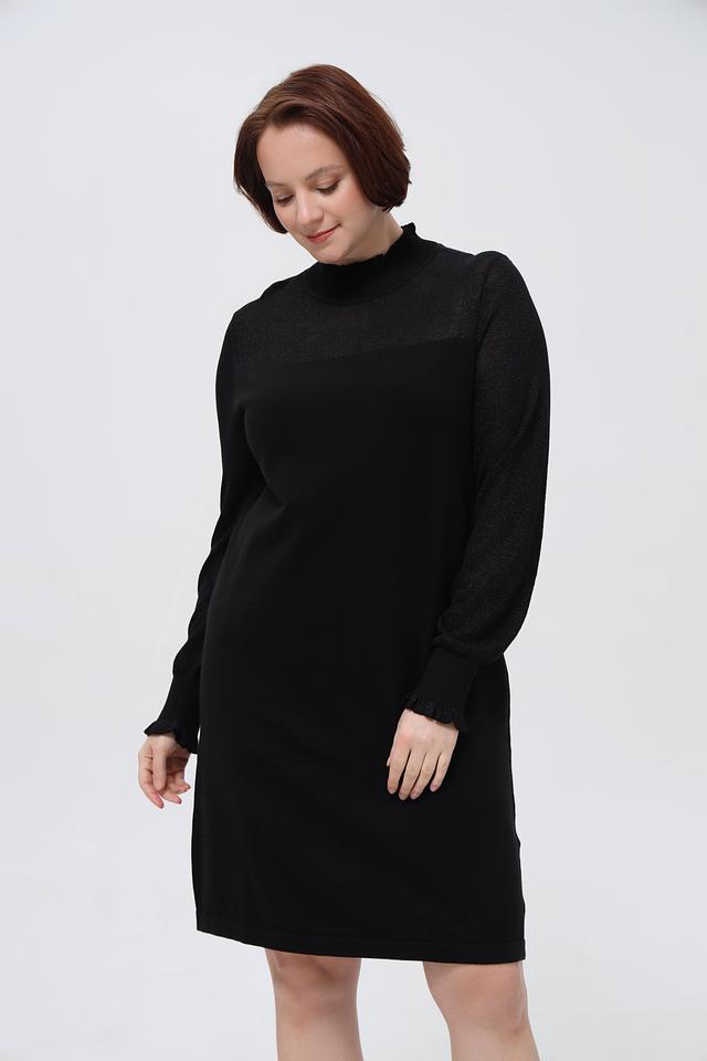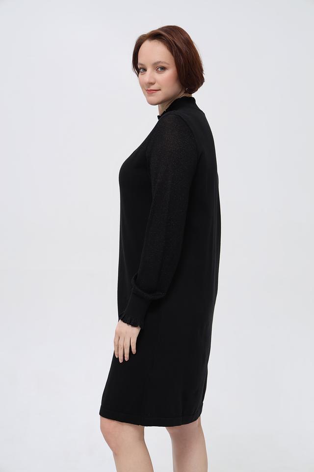Чёрное платье от Betty and Co — это универсальный предмет гардероба, который легко впишется в любой образ. Платье имеет прямой силуэт, длину чуть выше колена и рукава-фонарики, выполненные из текстурированной ткани.