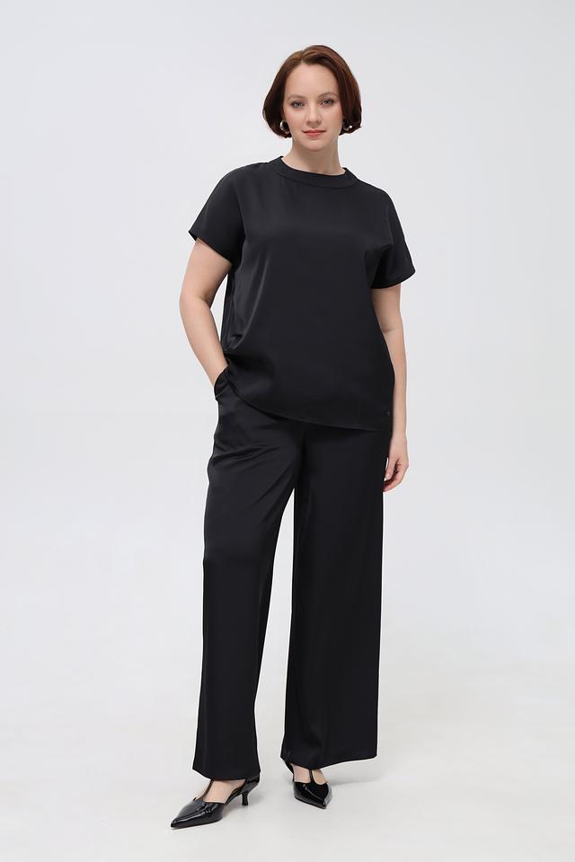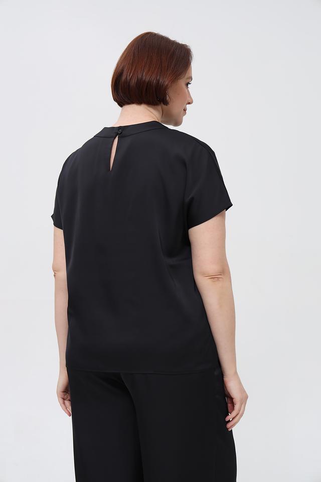 Блузка имеет прямой, свободный крой, который не сковывает движений и позволяет создать непринужденный образ. Круглый вырез горловины добавляет элегантности. Короткие рукава делают блузку идеальным выбором для теплой погоды.