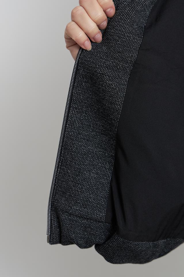 Жакет застегивается на молнию, что позволяет легко регулировать степень тепла. Крой жакета слегка свободный, что обеспечивает комфорт при движении. Рукава жакета имеют манжеты, которые плотно прилегают к запястью.