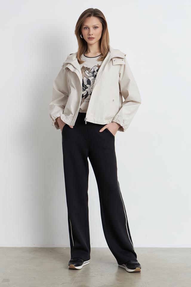 Куртка оснащена удобным капюшоном, который защитит от ветра и небольшого дождя. Застежка-молния обеспечивает надежную фиксацию. Рукава куртки снабжены манжетами, а низ – эластичной тесьмой, что создает аккуратный и завершенный образ.