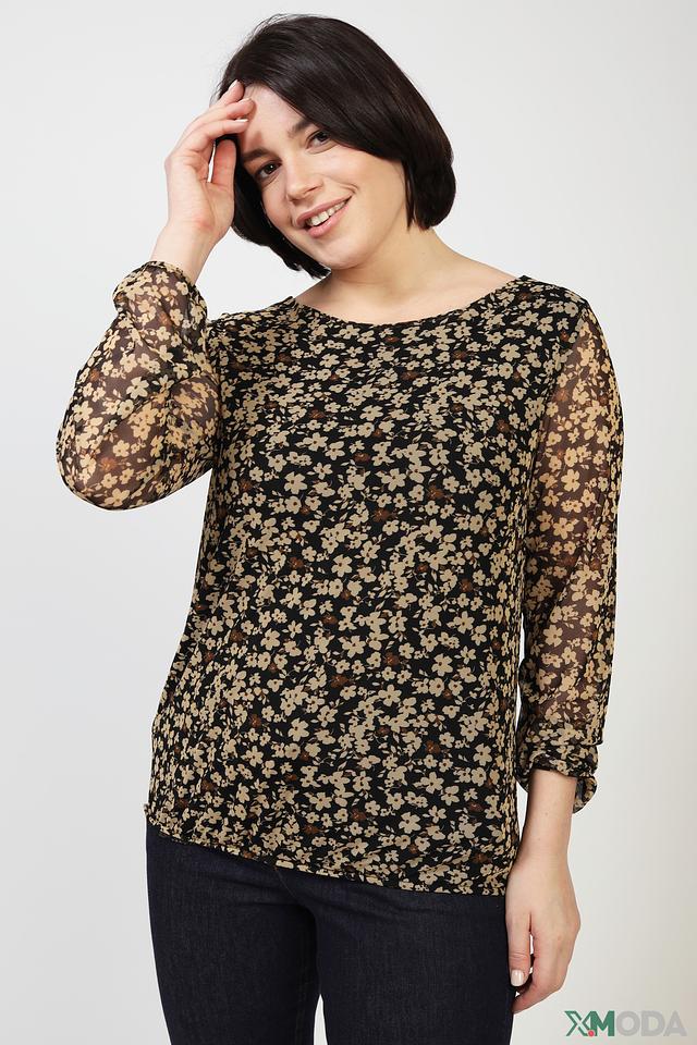 Эта блуза от Betty and Co – идеальный выбор для создания женственного и романтичного образа. Блуза выполнена в черном цвете и украшена мелким цветочным принтом, выполненным в бежевых и коричневых тонах.