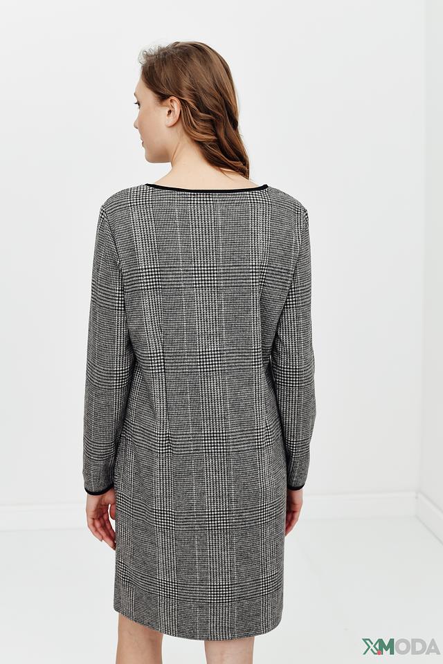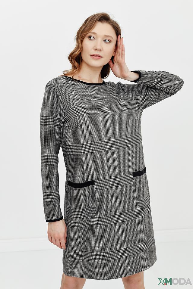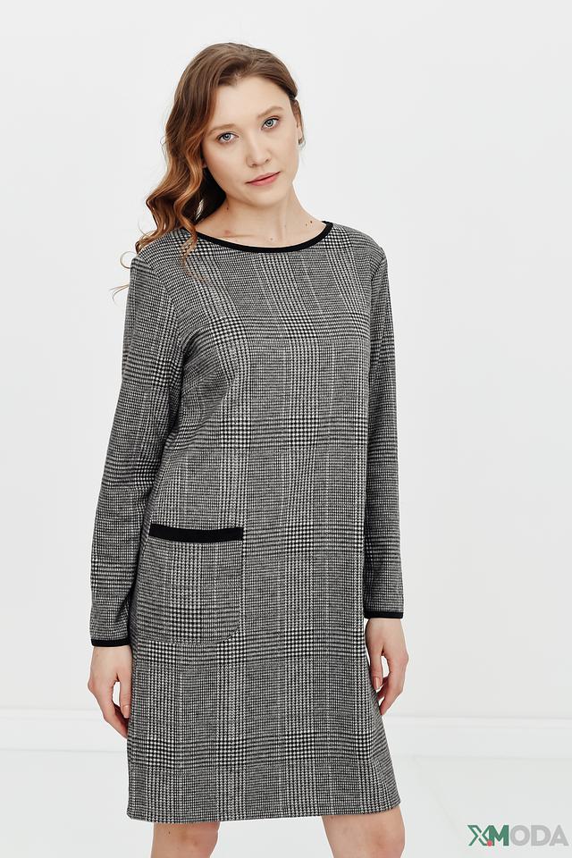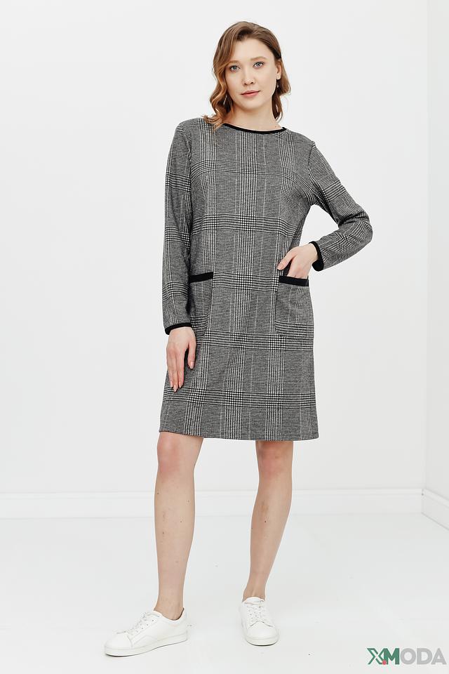 Платье Betty and Co серого цвета в классическую клетку – стильное и комфортное решение для повседневного образа. Модель имеет длинный рукав и удобный прямой крой, а черная отделка горловины и карманов добавляет изысканности. Состав: полиэстер 66%, вискоза 33%, эластан 1%