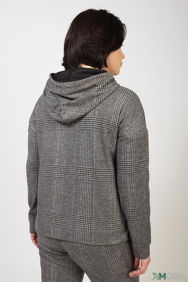 Женский пуловер Betty and Co серого цвета в классическую клетку – удобная и стильная модель с капюшоном и декоративными полосами на рукавах. Идеально подходит для создания повседневных образов. Состав: полиэстер 66%, вискоза 33%, эластан 1%