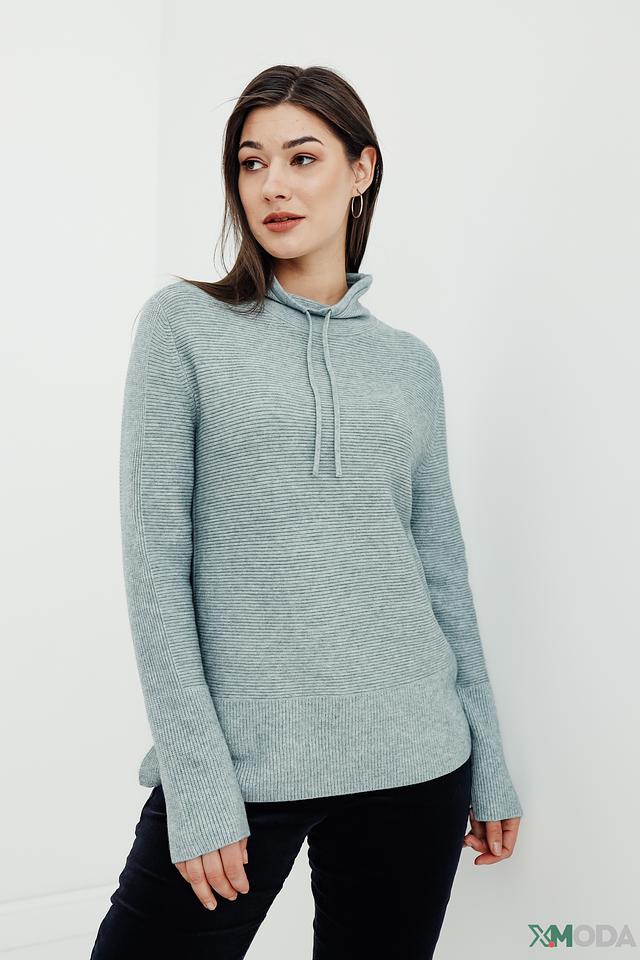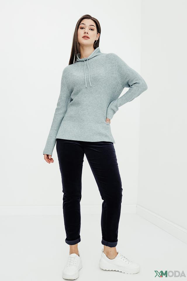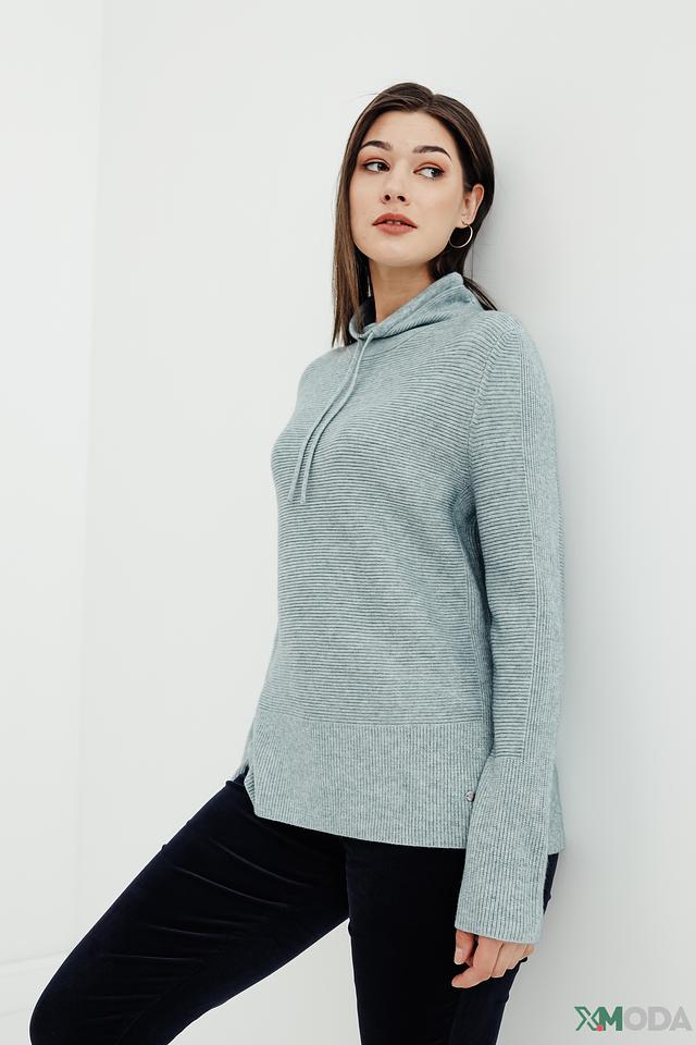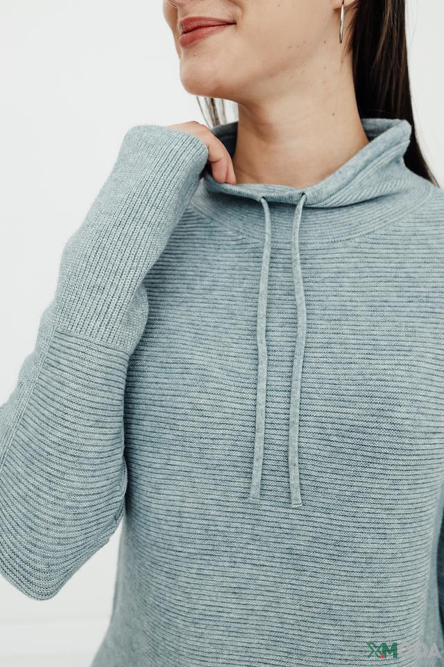 Мятный пуловер от Betty and Co с капюшоном на шнурках – стильный и комфортный выбор для повседневного гардероба. Изготовлен из мягкого трикотажа в рубчик, имеет свободный крой и боковые разрезы. Состав: вискоза 50%, полиамид 27%, полиэстер 23%