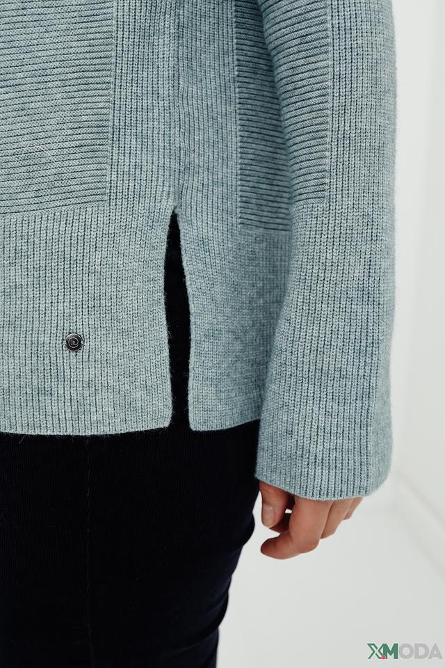 Пуловер имеет длинные рукава с манжетами и слегка удлиненный силуэт. Боковые разрезы добавляют динамики и позволяют создать более интересный образ. Мятный цвет пуловера освежает и легко сочетается с другими элементами гардероба.