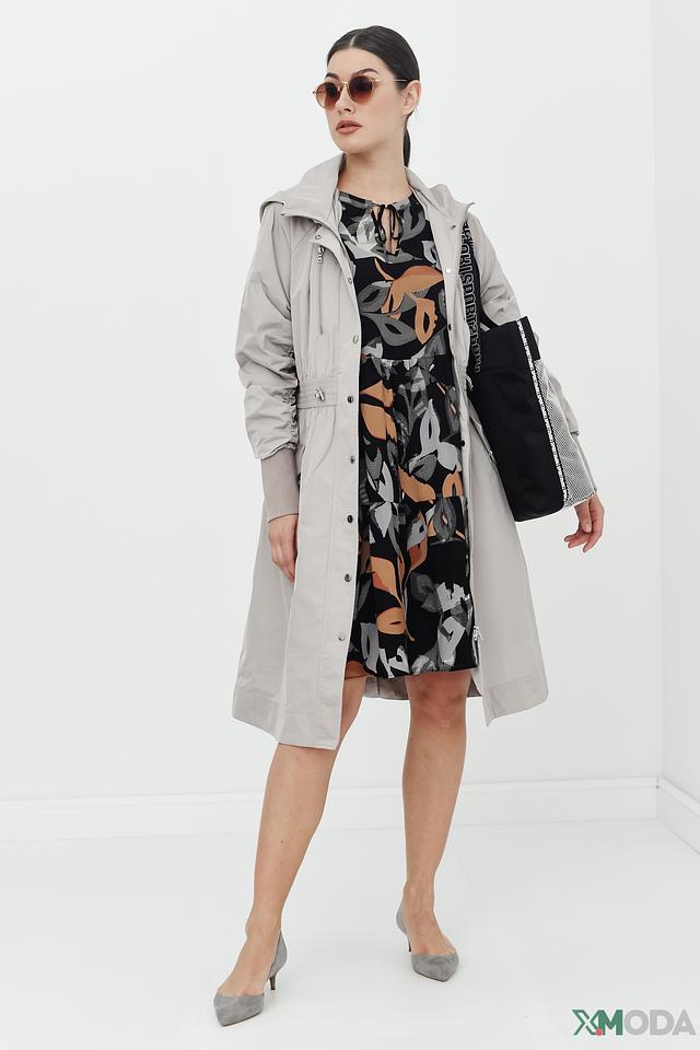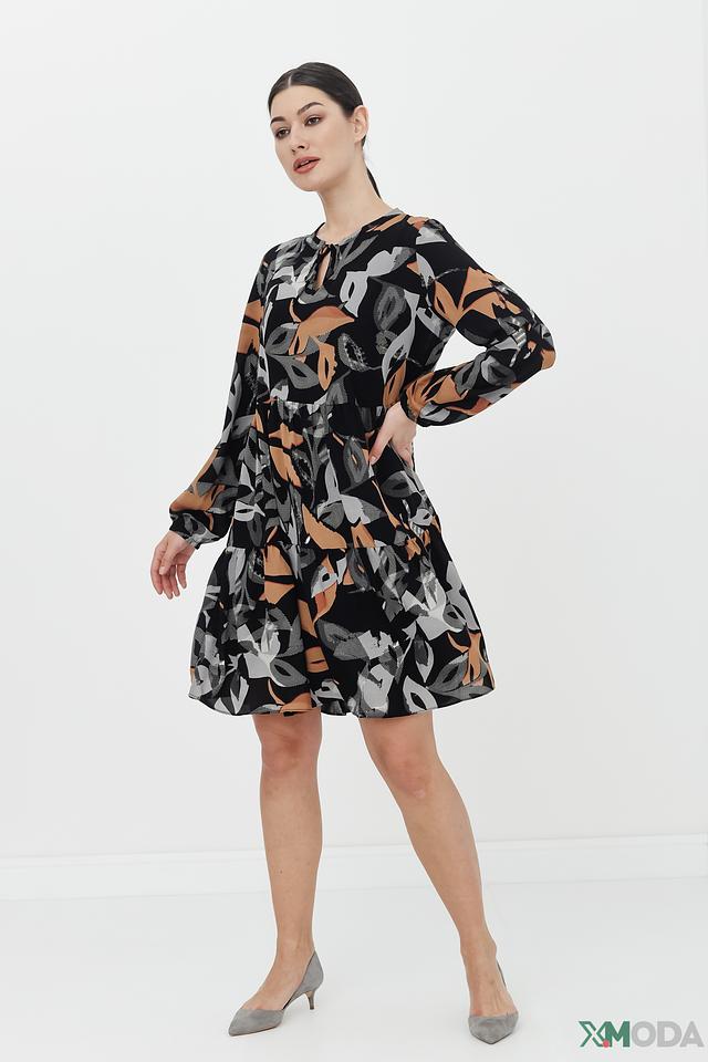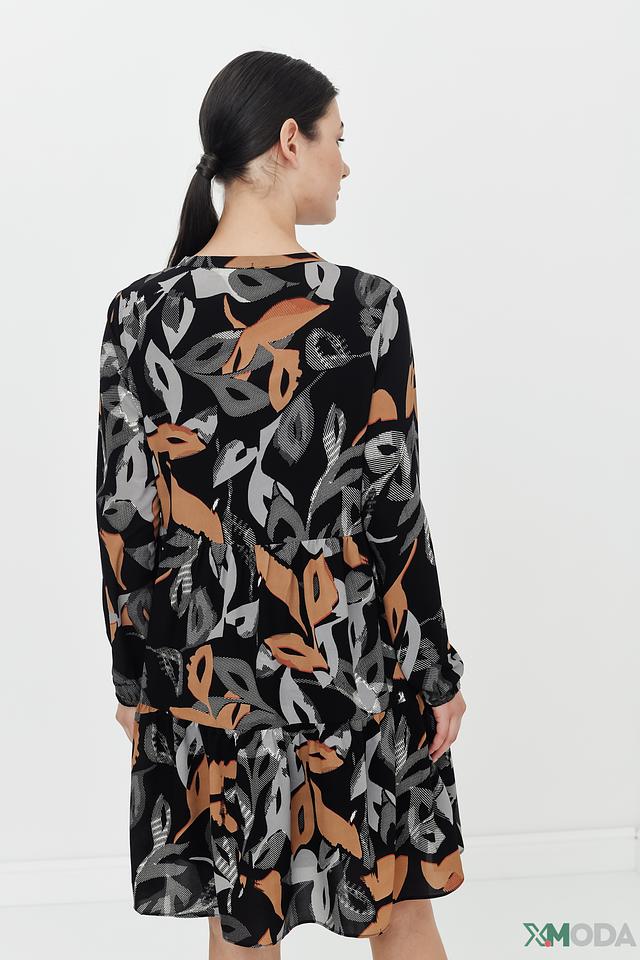 Это элегантное платье от Betty and Co станет прекрасным дополнением вашего гардероба. Платье выполнено в чёрном цвете и украшено ярким цветочным принтом, сочетающим в себе оттенки коричневого, серого и бежевого.