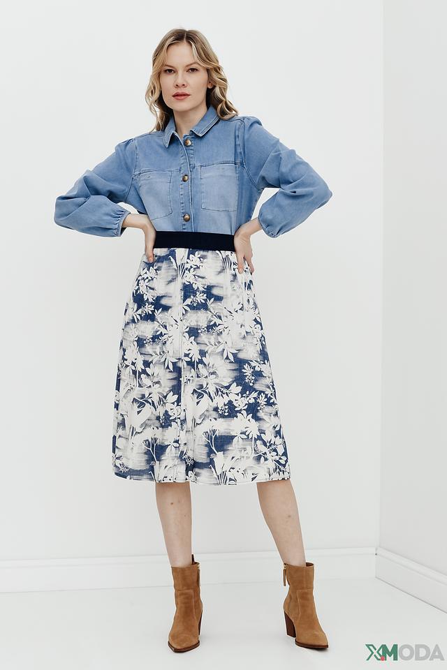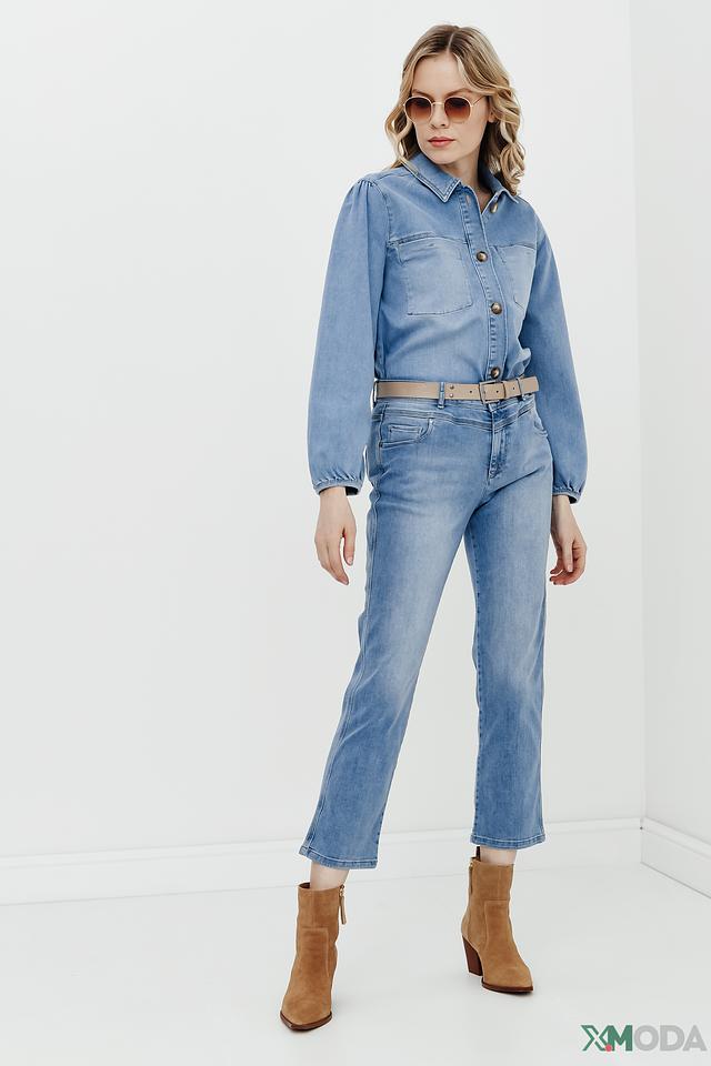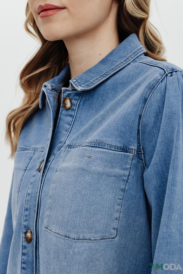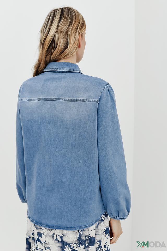 Голубая рубашка Betty and Co из денима с длинным рукавом и застежкой на пуговицы. Модель выполнена в свободном крое с рукавами-фонариками, что придает ей особый шарм и комфорт. Состав: хлопок 98%, эластан 2%