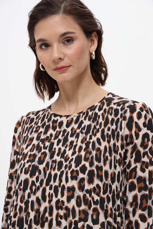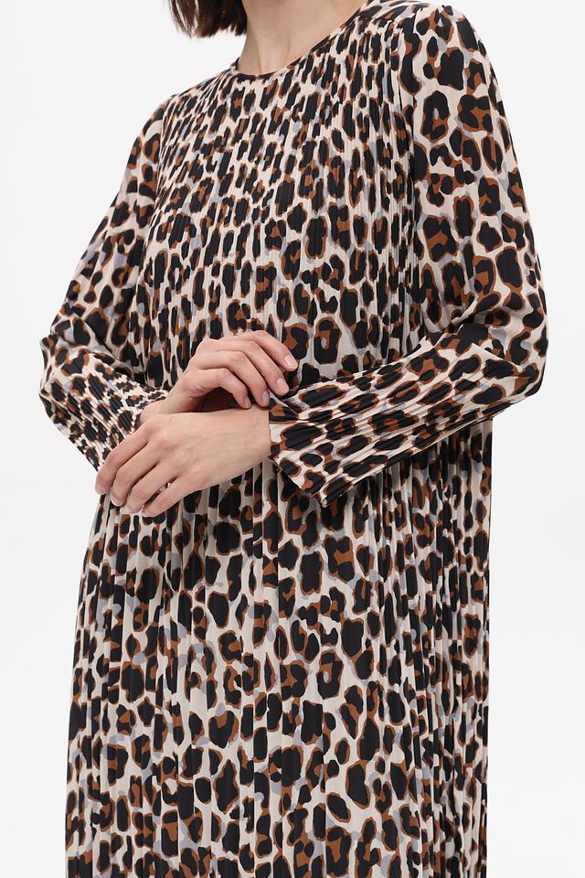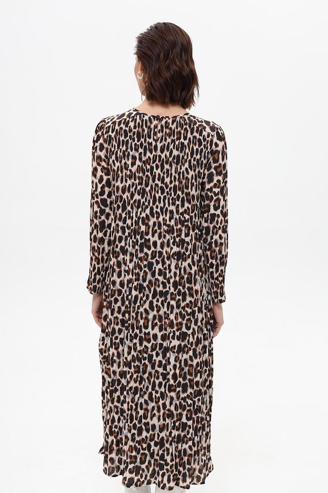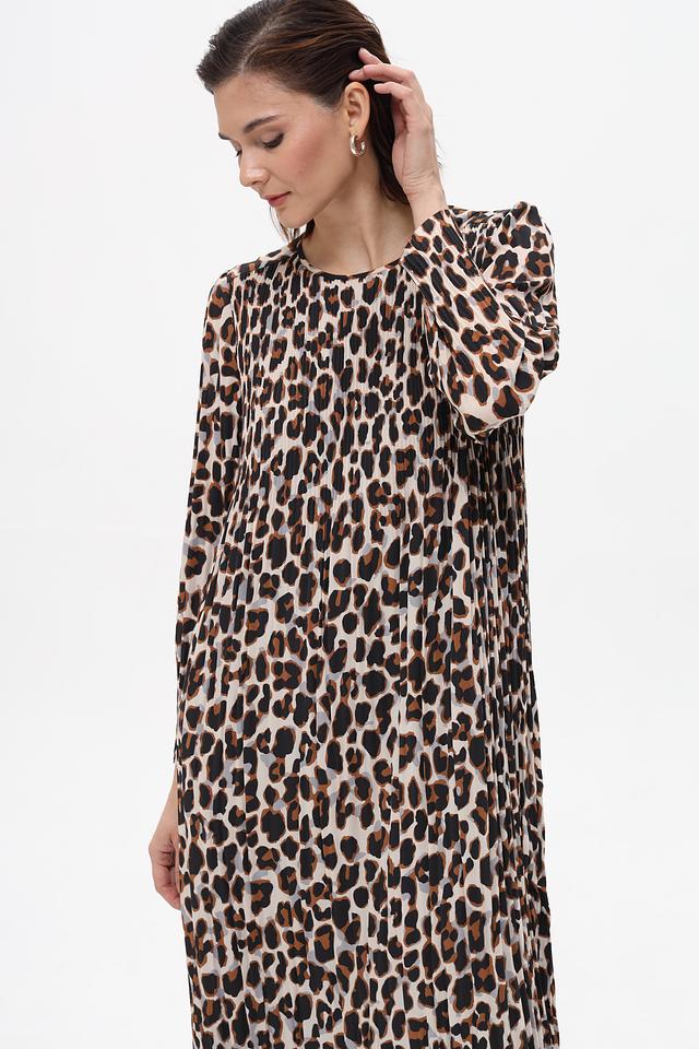 Основной цвет платья – хаки, но его украшает яркий леопардовый принт, который добавляет образу динамичности и оригинальности. Платье идеально подойдет для создания стильного и женственного образа.