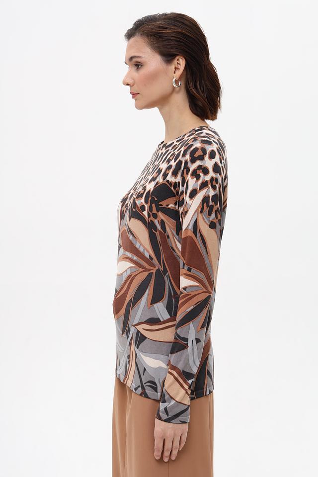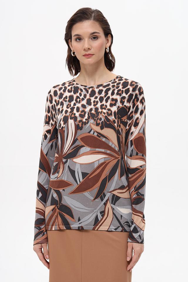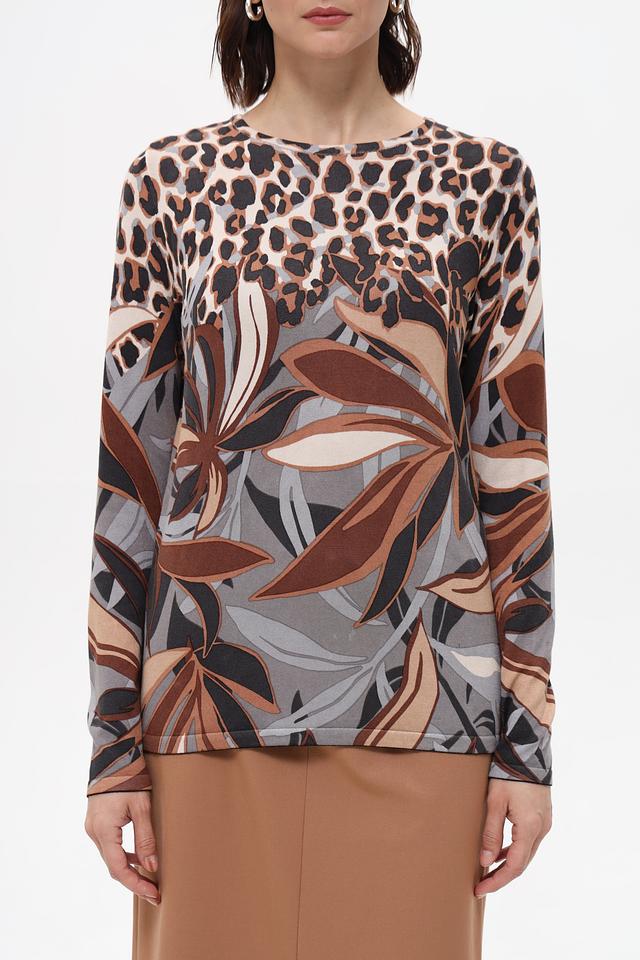 Женский пуловер Betty Barclay коричневого цвета с оригинальным принтом. Изготовлен из мягкой и приятной к телу вискозы с добавлением полиамида. Состав: вискоза 80%, полиамид 20%
