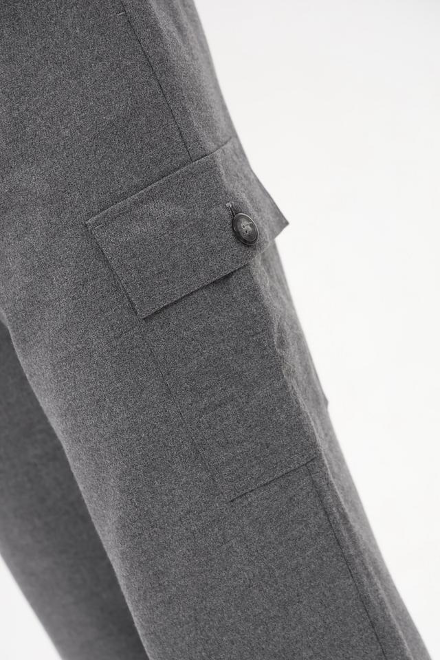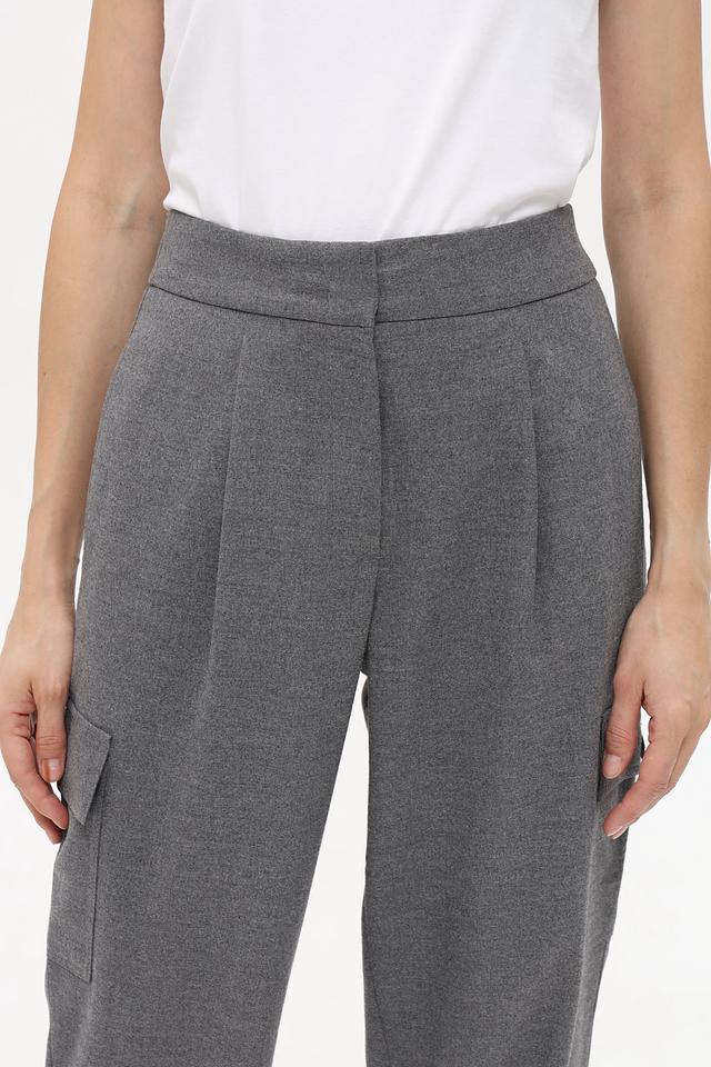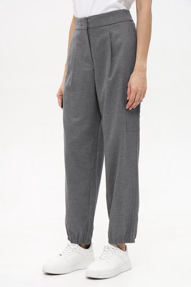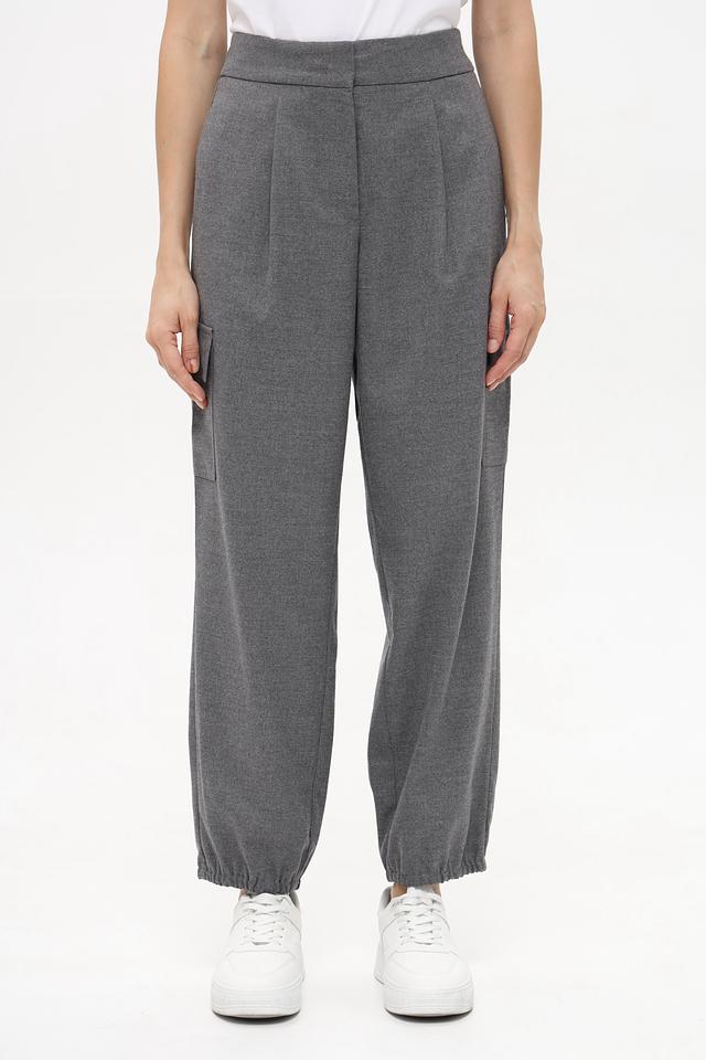 Брюки имеют эластичный пояс с кулиской, что позволяет регулировать посадку. По бокам расположены функциональные карманы-карго, добавляющие образу практичности и стиля. Низ брюк собран на манжет с кулиской.