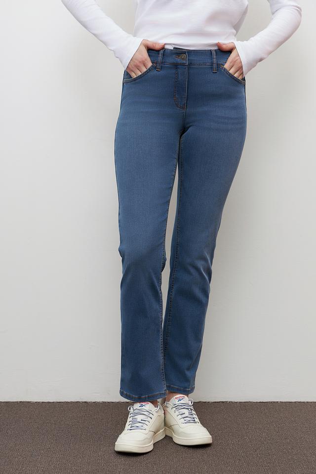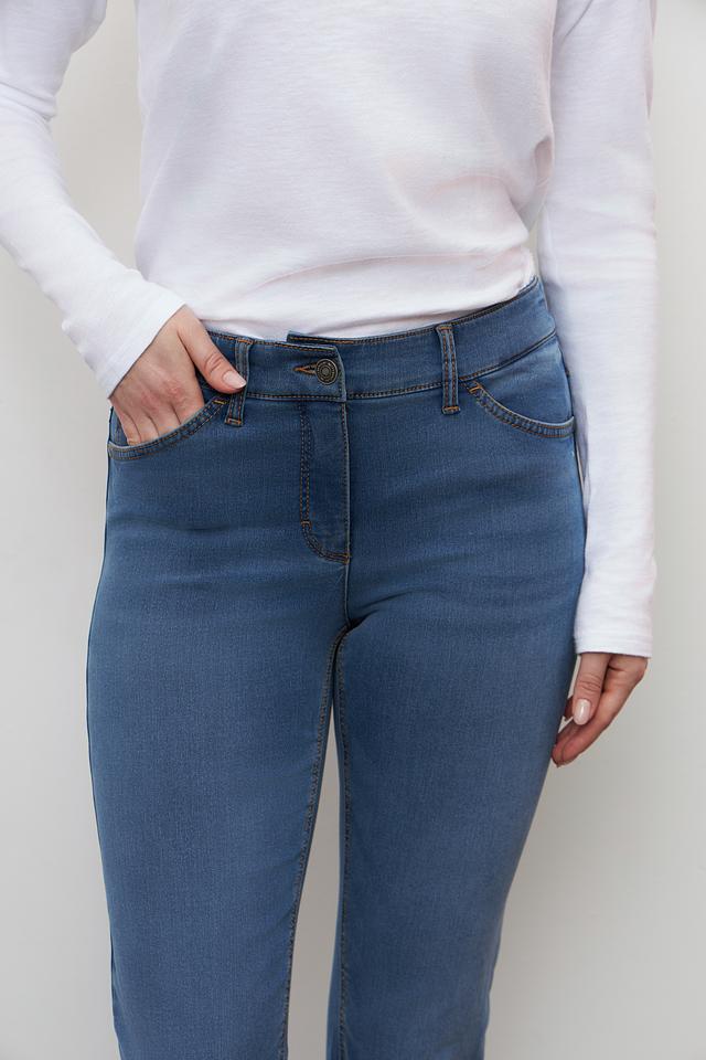 Синие джинсы Betty Barclay классического кроя с эластичным поясом. Модель выполнена из хлопка с добавлением полиэстера и эластана, что обеспечивает комфорт и хорошую посадку по фигуре. Состав: хлопок 64%, полиэстер 29%, эластан 7%