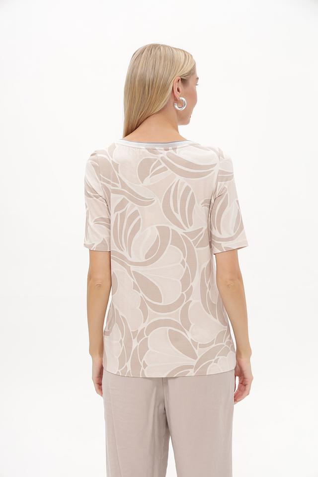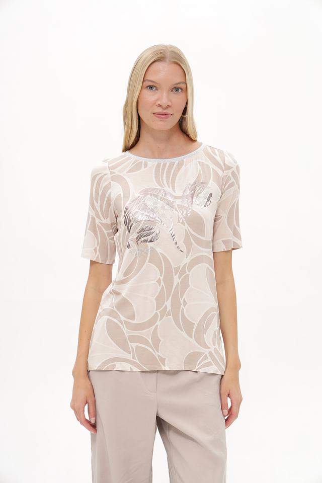 Бежевая блуза Betty Barclay с оригинальным принтом и короткими рукавами станет отличным дополнением к вашему гардеробу. Изготовлена из мягкой вискозы с добавлением эластана для комфорта и удобства. Состав: вискоза 95%, эластан 5%