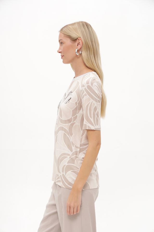 Эта стильная блуза от Betty Barclay выполнена в нежном бежевом цвете и украшена абстрактным принтом, придающим ей изысканность.