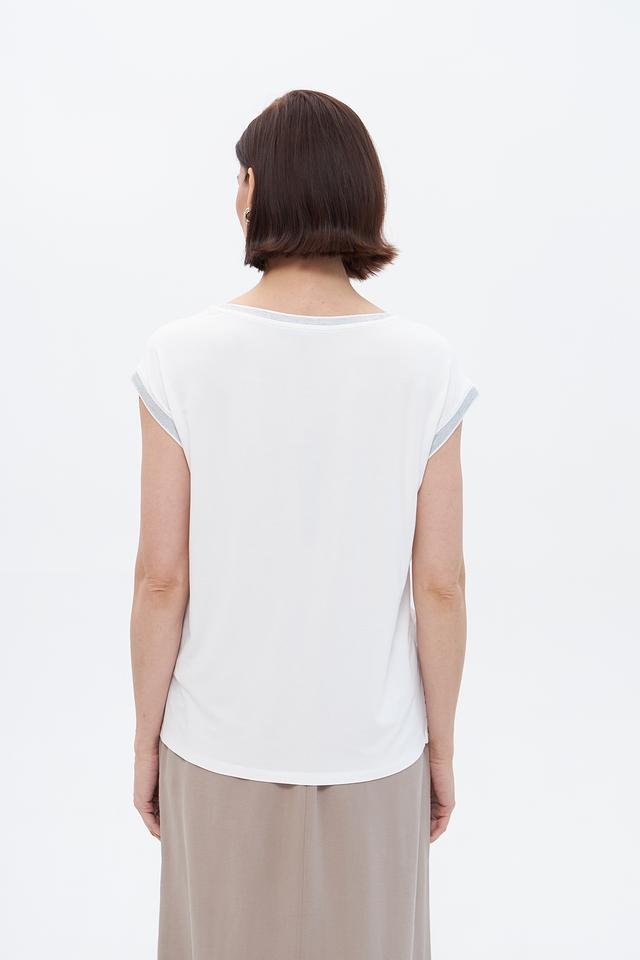 Блузка имеет свободный крой, который обеспечивает комфорт в носке, а короткие рукава делают её подходящей для теплой погоды. Модель выполнена из высококачественной вискозы с добавлением эластана, что обеспечивает мягкость, приятные тактильные ощущения и хорошую посадку по фигуре.