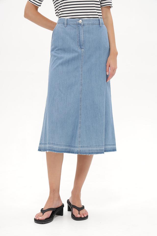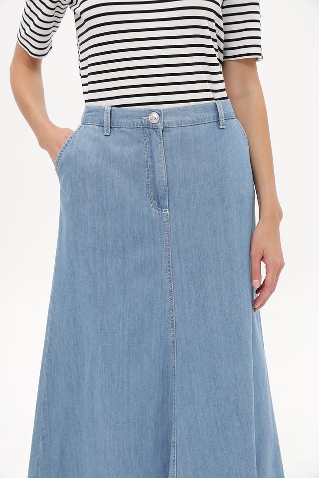Юбка Betty Barclay голубого цвета выполнена из денима. Модель длиной миди с карманами и слегка необработанным краем. Идеальный выбор для создания повседневных образов. Состав: хлопок 50%, луоселл 40%, модал 10%