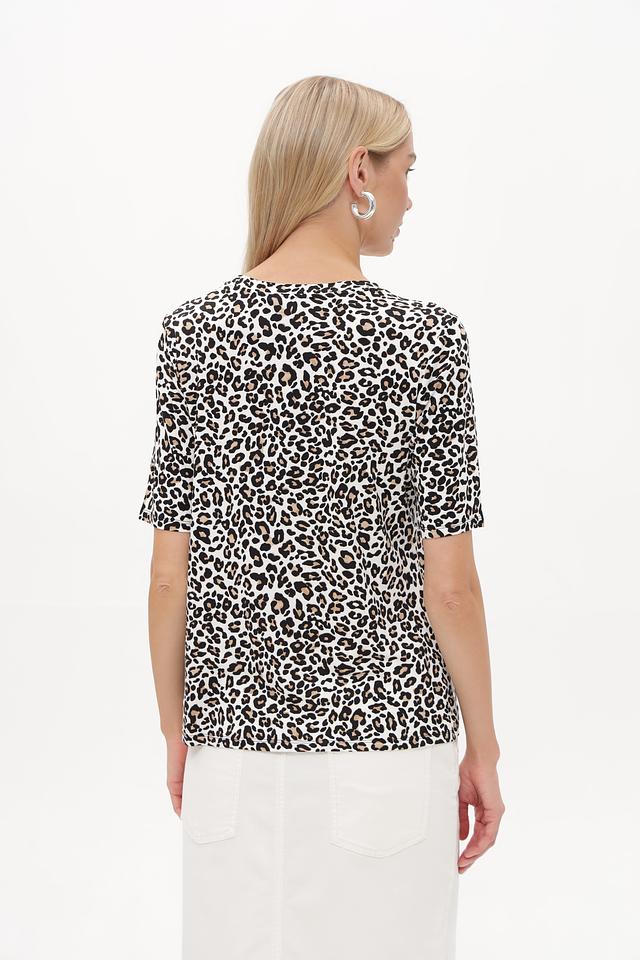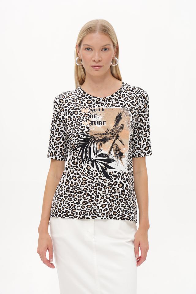 Женская футболка Betty Barclay белого цвета с ярким леопардовым принтом и эффектным декором. Модель выполнена из мягкой вискозы с добавлением эластана, обеспечивающей комфорт и свободу движений. Состав: вискоза 95%, эластан 5%
