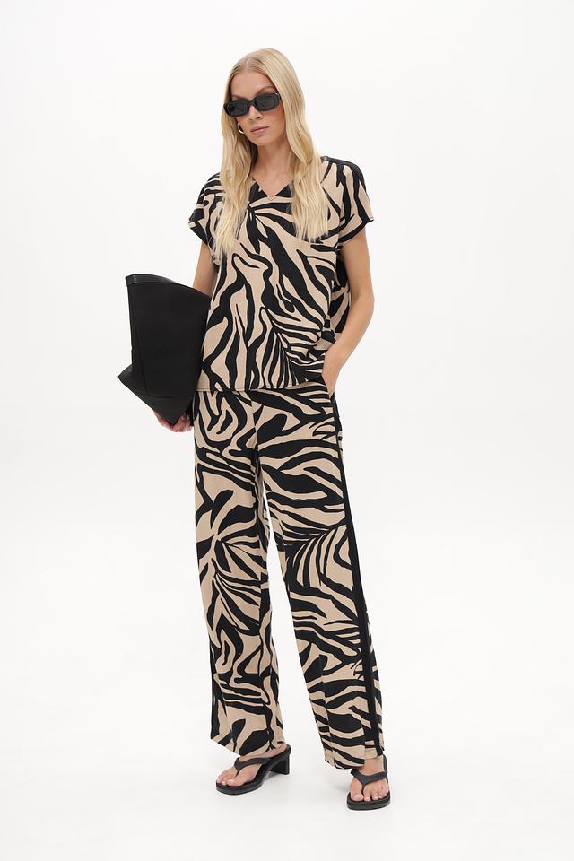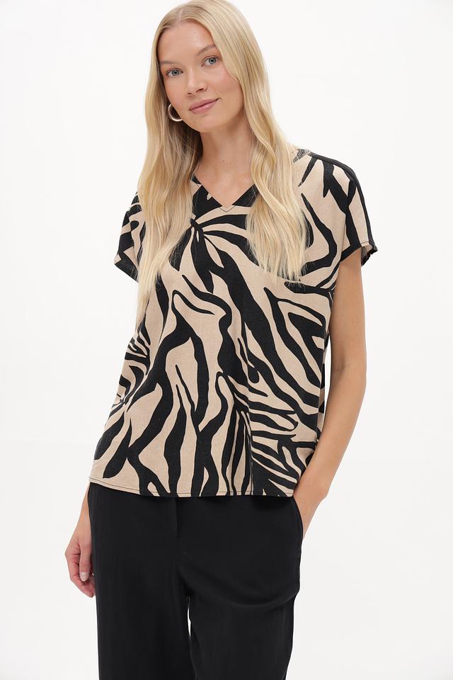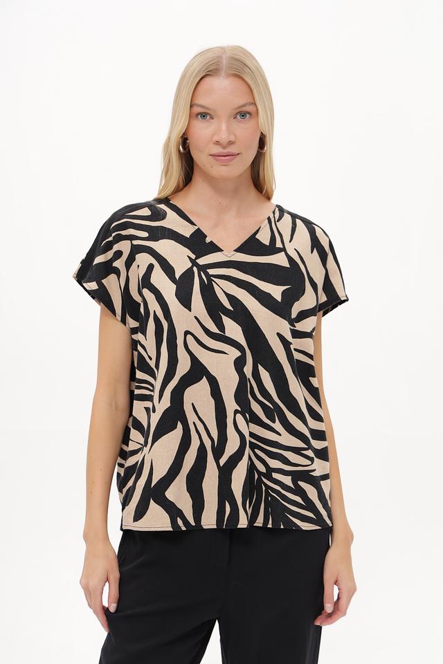 Особое внимание привлекает яркий принт в виде "зебры", который добавит образу динамичности и оригинальности. Свободный крой блузки не сковывает движений и позволяет создавать различные стильные сочетания.
