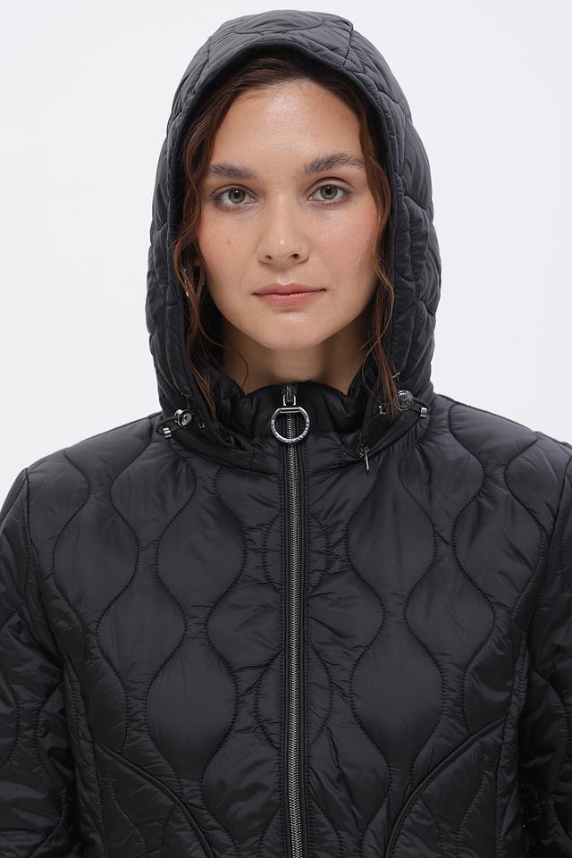 Стеганое пальто Betty Barclay черного цвета – это стильное и практичное решение для прохладной погоды. Модель с капюшоном и застежкой-молнией имеет удобные боковые карманы и слегка приталенный силуэт. Состав: полиамид 100%