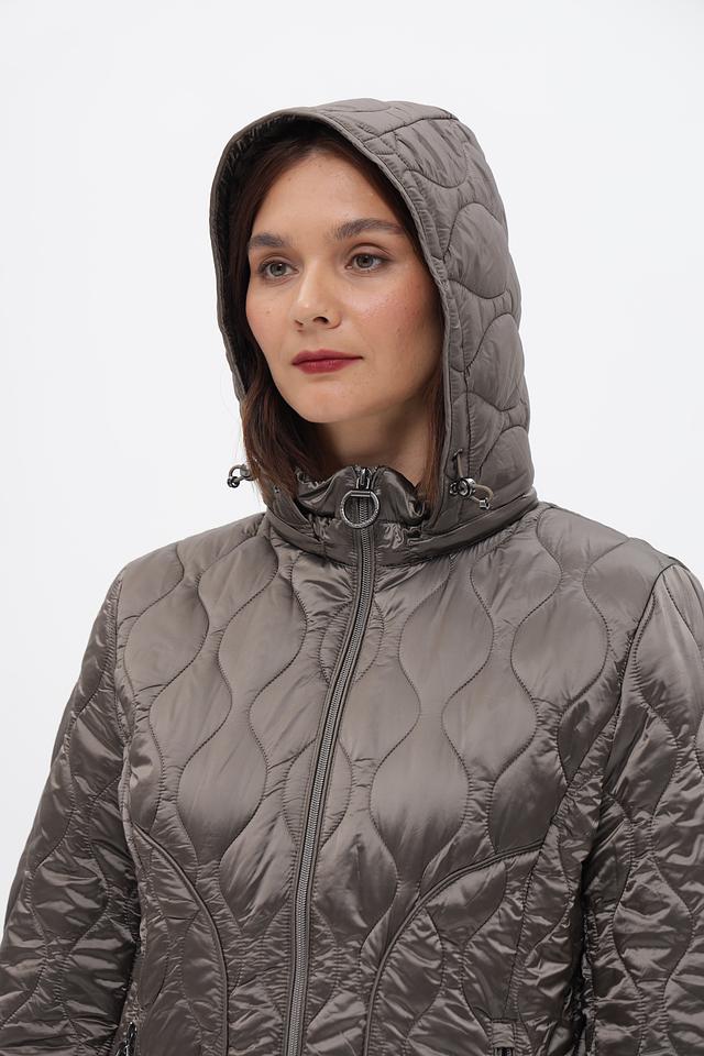 Стильное пальто от Betty Barclay серого цвета выполнено в стеганом дизайне с капюшоном. Удобная застежка-молния и боковые карманы делают эту модель практичной и универсальной. Состав: полиамид 100%