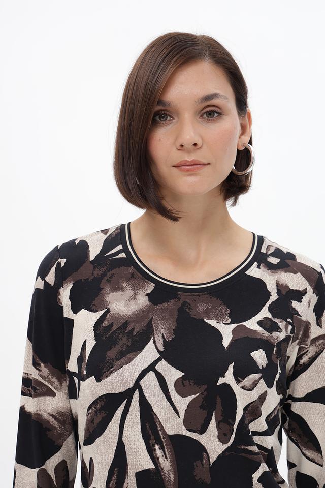 Женская блуза Betty Barclay бежевого цвета с крупным цветочным принтом. Изготовлена из мягкой вискозы с добавлением эластана для комфортной посадки. Идеальный выбор для создания элегантного повседневного образа. Состав: вискоза 95%, эластан 5%