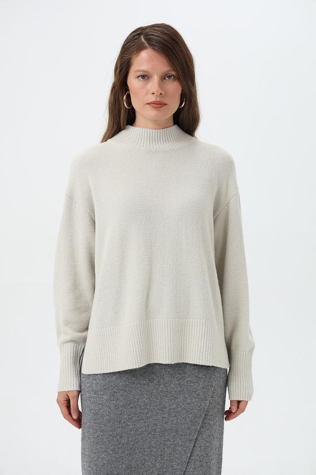 Пуловер имеет высокий ворот, который добавляет образу изысканности. Свободный крой не стесняет движений и позволяет создавать различные комбинации с другой одеждой. Длинные рукава делают этот пуловер идеальным для прохладной погоды.