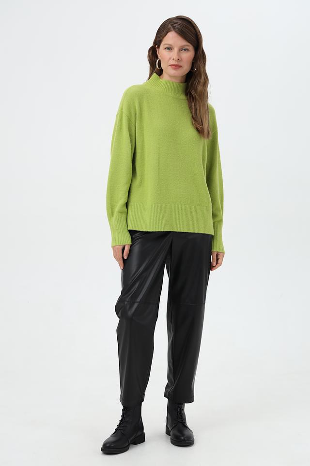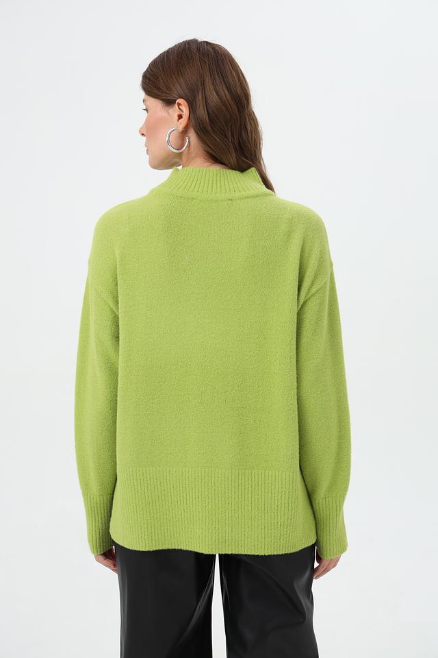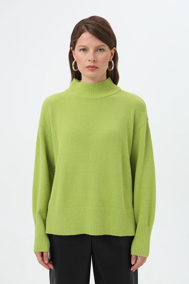 Пуловер имеет высокий ворот, который придаёт изделию элегантность и утончённость. Свободный крой обеспечивает комфорт и свободу движений, позволяя создавать расслабленные, но при этом стильные образы.
