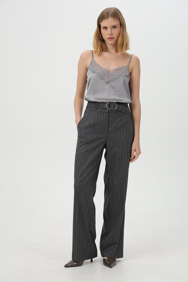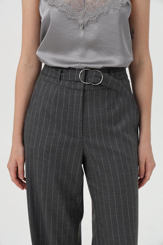 Брюки дополнены стильным поясом с оригинальной металлической пряжкой, что подчеркивает их современный дизайн.