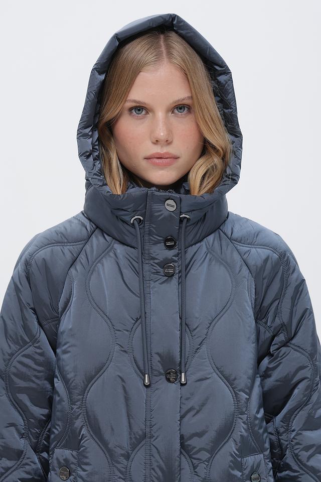 Куртка имеет стеганую фактуру, которая придает ей современный и элегантный вид. Капюшон обеспечивает дополнительную защиту от непогоды, а застежка-молния позволяет легко регулировать степень теплоизоляции.