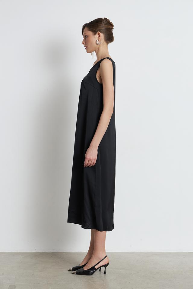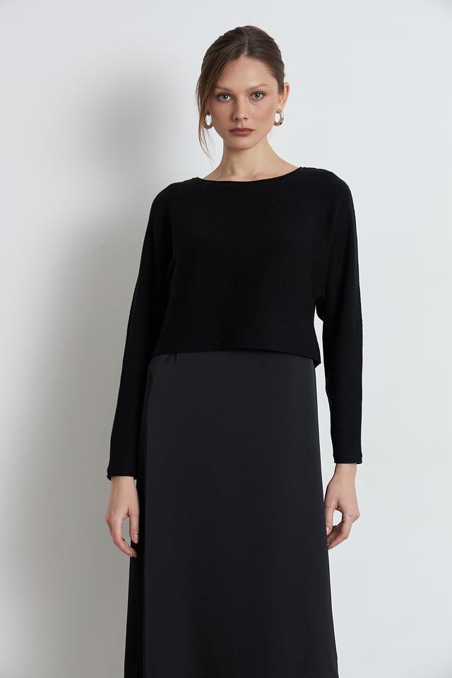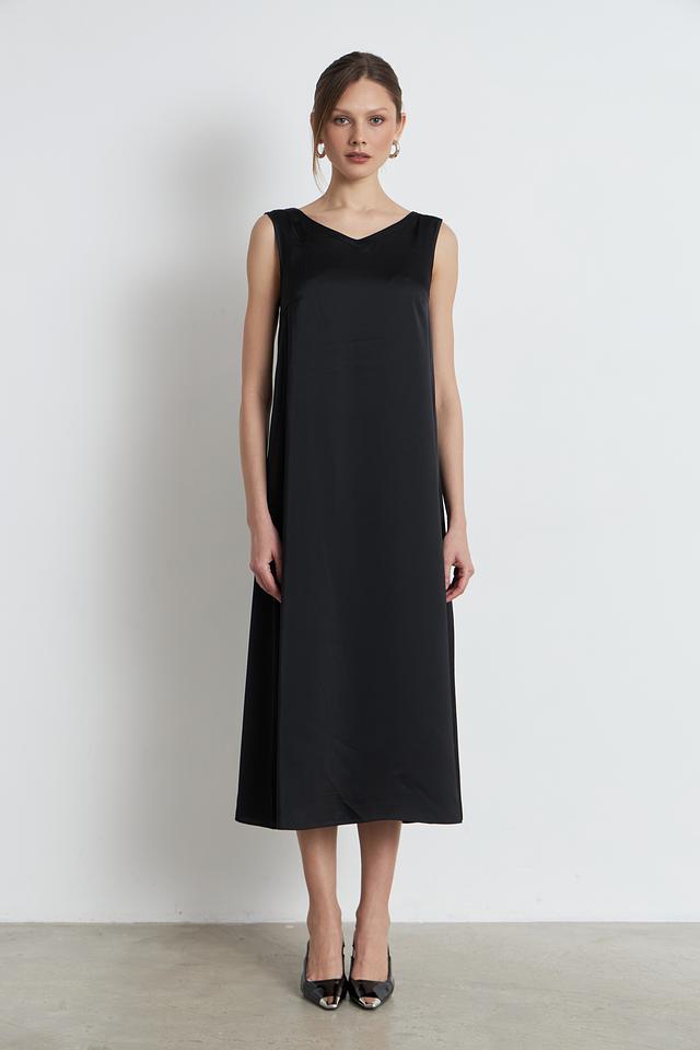 Платье имеет прямой, слегка расклешенный силуэт, который подходит для разных типов фигур. Длина миди делает его универсальным вариантом для повседневной носки и особых случаев. Круглый вырез горловины и длинные рукава добавляют платью классический вид.