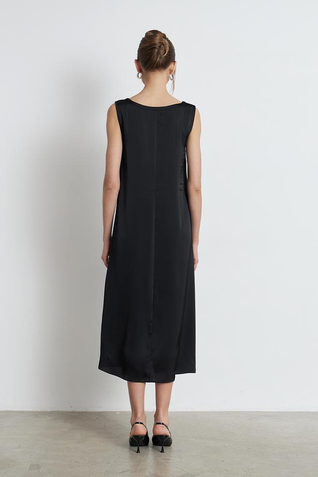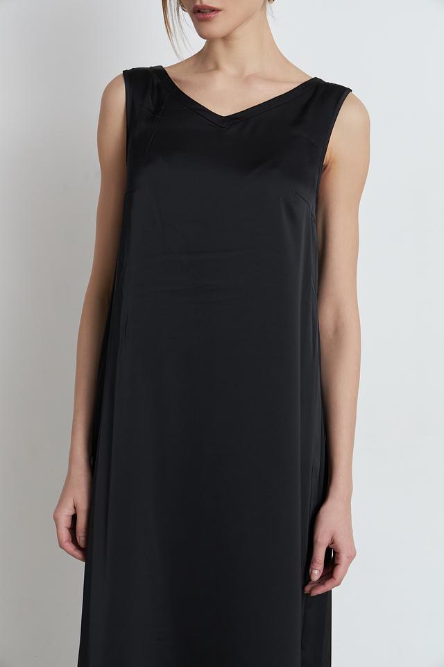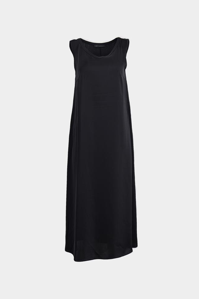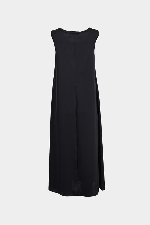 Чёрное платье от Betty Barclay выполнено из сочетания трикотажа и гладкой ткани. Модель имеет длину миди и свободный силуэт, что обеспечивает комфорт и элегантный вид. Состав: полиэстер 100%