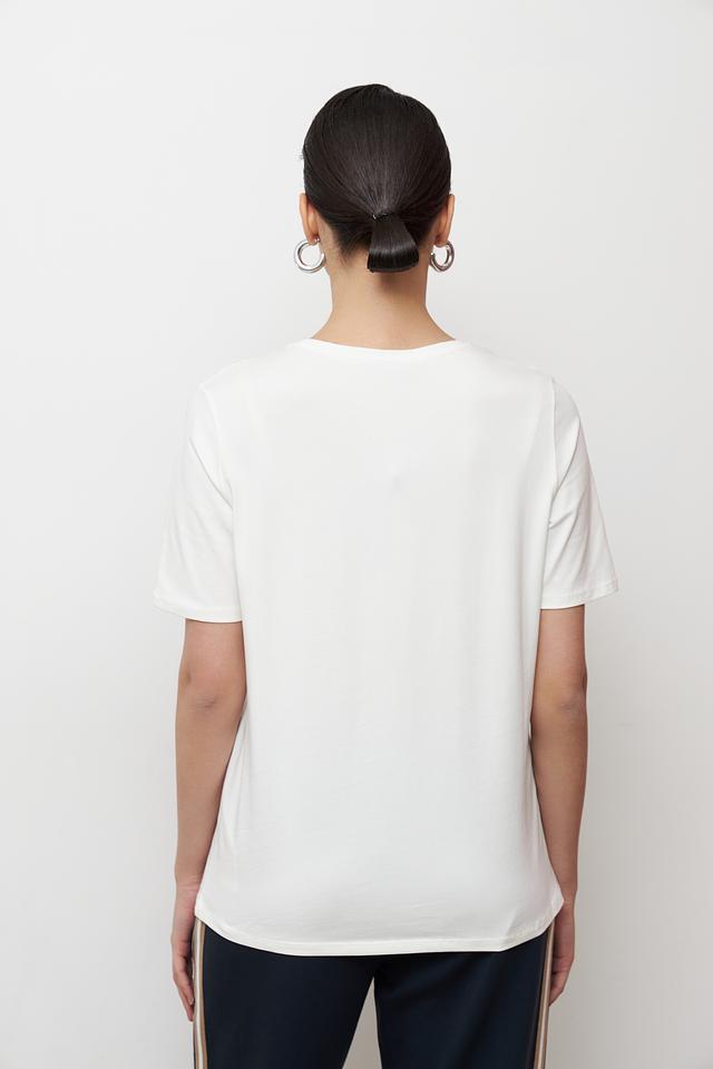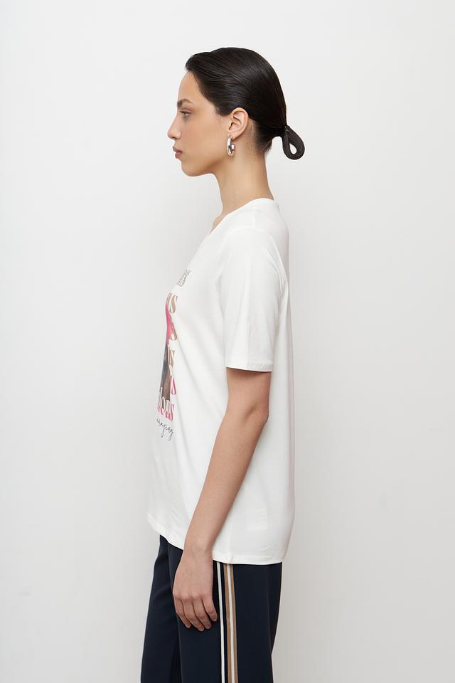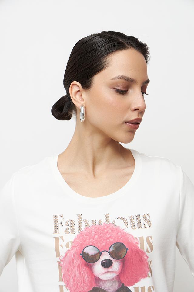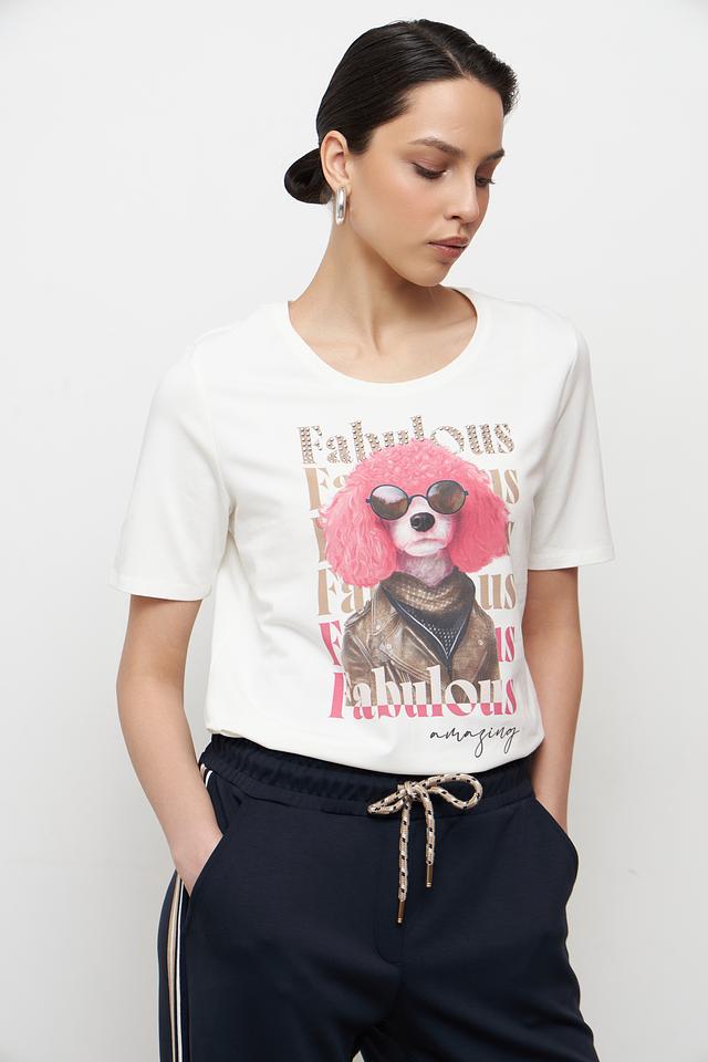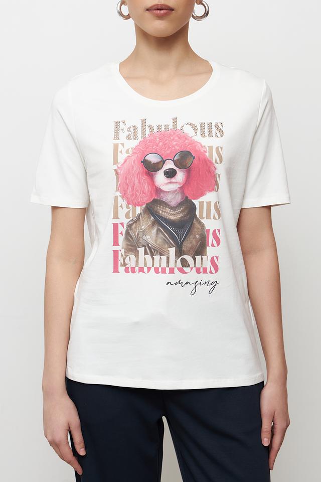 Эта стильная футболка от Betty Barclay станет отличным дополнением к вашему гардеробу. Футболка выполнена в белом цвете и украшена оригинальным принтом с изображением собаки в очках.