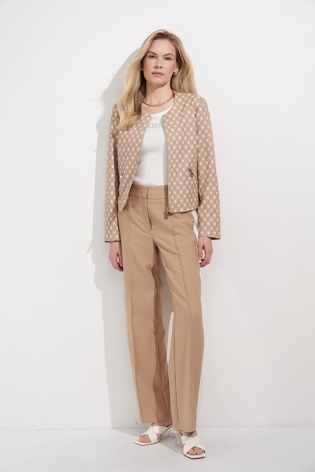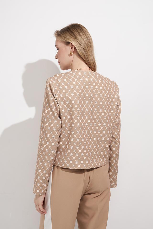 Этот жакет от Betty Barclay станет прекрасным дополнением к вашему гардеробу. Жакет выполнен в бежевом цвете и украшен стильным геометрическим принтом, что придает ему особый шарм.