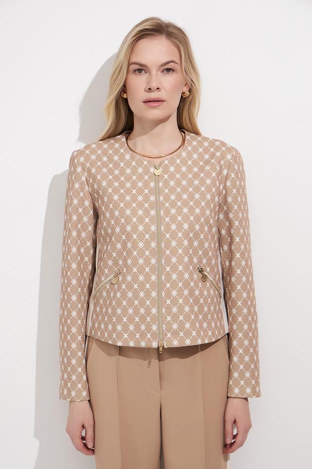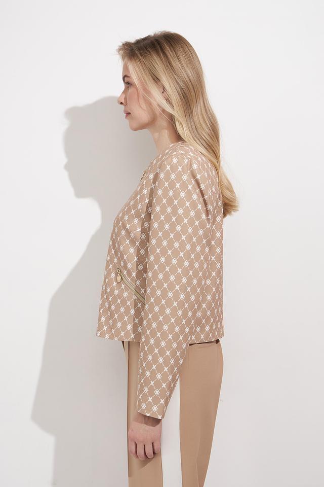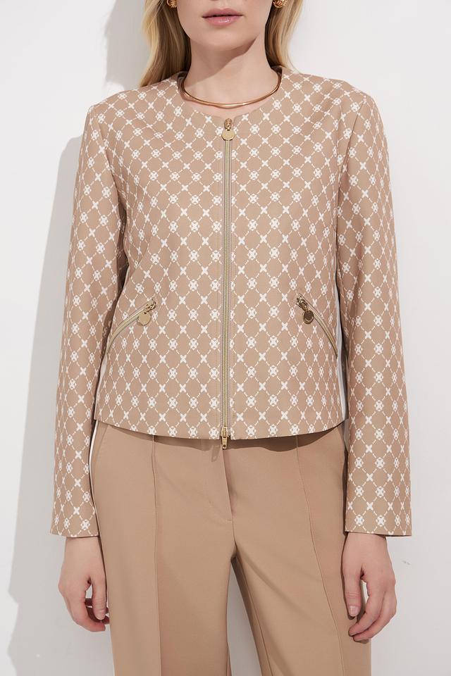 Жакет Betty Barclay бежевого цвета с геометрическим принтом – стильное и элегантное решение для создания модных образов. Модель застегивается на молнию и дополнена функциональными карманами на молнии. Состав: полиэстер 88%, эластан 12%