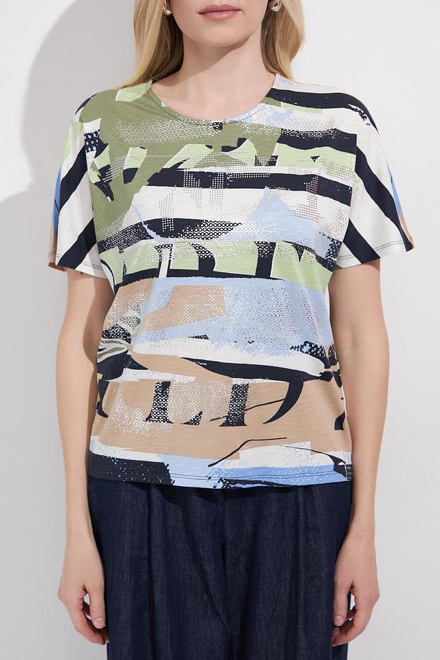 Женская футболка Betty Barclay светло-голубого цвета с оригинальным абстрактным принтом. Модель выполнена из мягкого и приятного к телу сочетания хлопка и модала, обеспечивая комфорт в носке. Состав: хлопок 50%, модал 50%