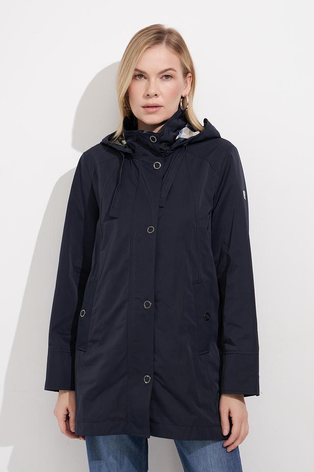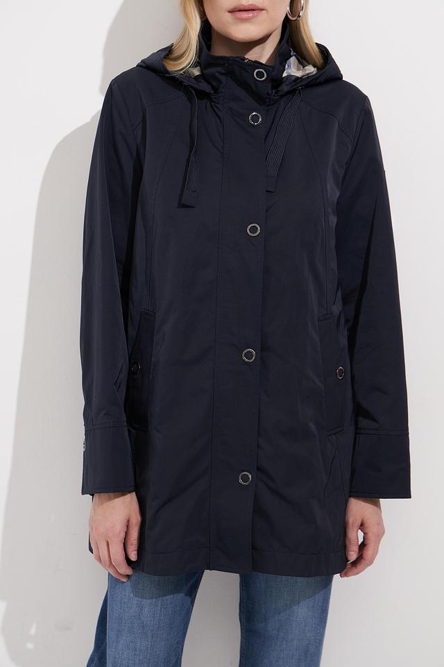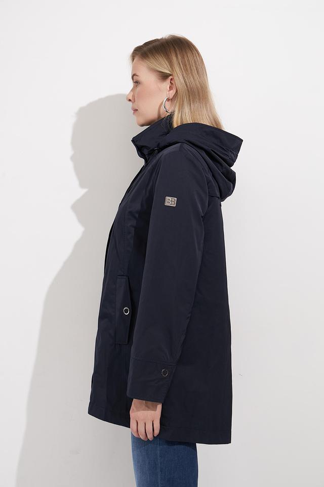 Куртка Betty Barclay темно-синего цвета с декоративной отделкой — стильное и практичное решение для повседневного гардероба. Модель оснащена капюшоном и застегивается на кнопки. Состав: полиэстер 100%