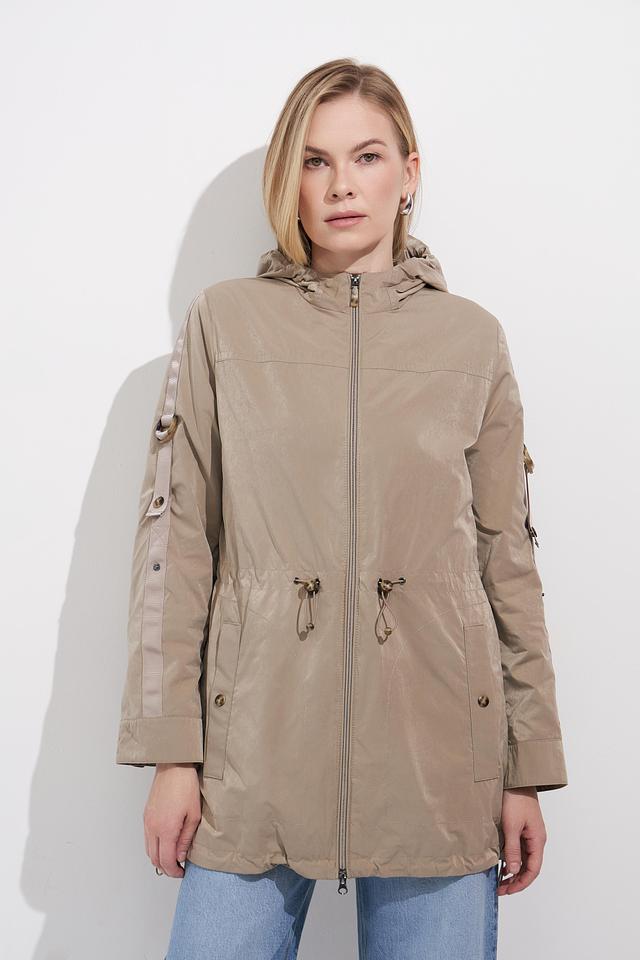 Куртка имеет удобный капюшон, который защитит от непогоды, а также функциональные карманы для хранения необходимых мелочей. Застёжка-молния обеспечивает надёжную фиксацию, а шнурки на капюшоне и по низу куртки позволяют регулировать посадку по фигуре.
