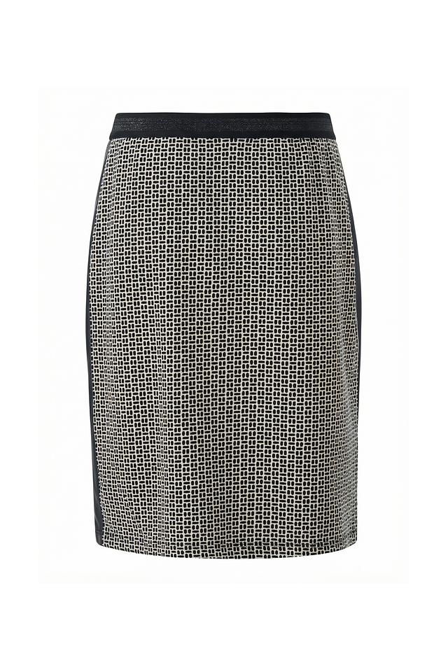 Юбка Betty Barclay чёрно-белого цвета с геометрическим принтом и кожаной вставкой – стильное решение для создания элегантного образа. Модель длиной до колена выполнена из качественного сочетания полиэстера, вискозы и эластана. Состав: полиэстер 67%, вискоза 30%, эластан 3%
