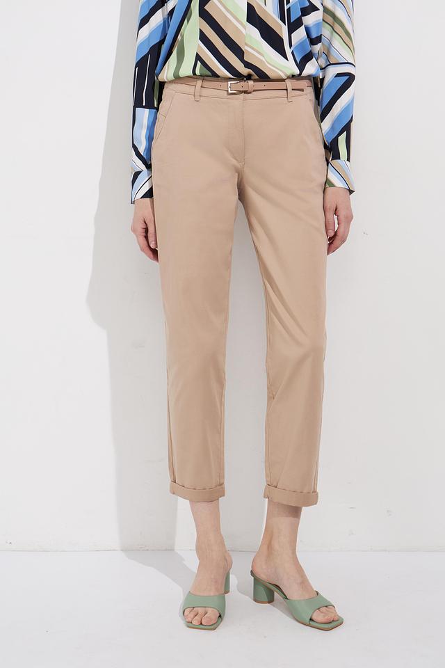 Бежевые брюки от Betty Barclay – это стильное и комфортное решение для создания повседневного образа. Модель выполнена из хлопка с добавлением эластана, что обеспечивает удобную посадку и свободу движений. Брюки имеют классический крой и зауженный силуэт. Состав: хлопок 97%, эластан 3%