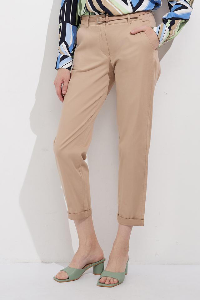 Нежный бежевый цвет брюк легко сочетается с различными элементами одежды, позволяя создавать разнообразные образы – от деловых до повседневных. Идеально подойдут для работы, прогулок или встреч с друзьями. Состав: хлопок 97%, эластан 3%.