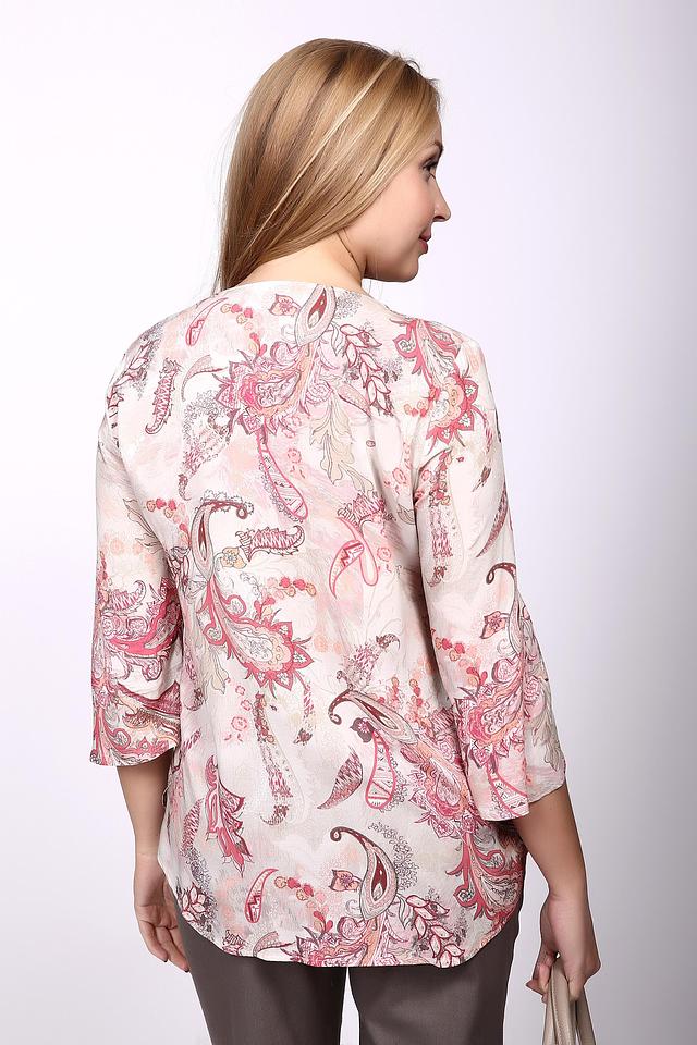 Блуза имеет легкий, струящийся силуэт и V-образный вырез, который подчеркивает женственность. Рукава длиной 3/4 добавляют образу элегантности.