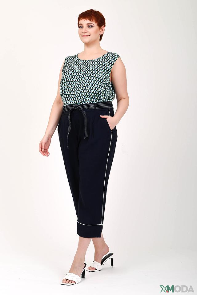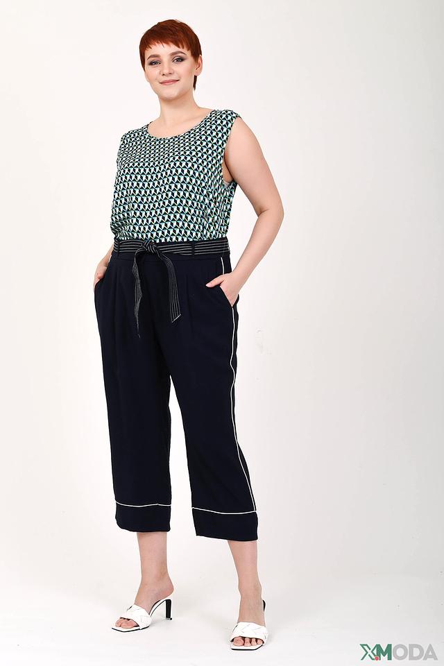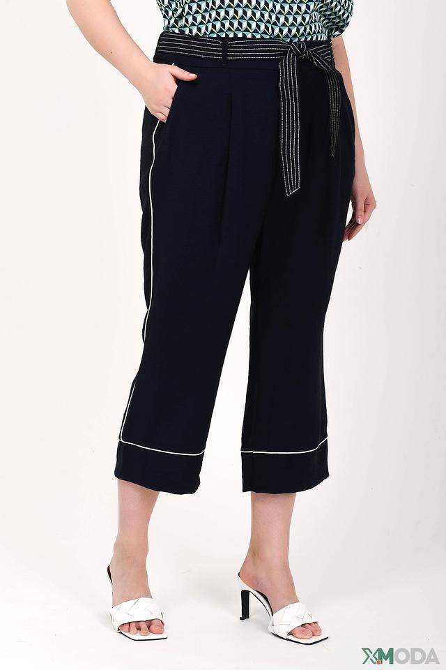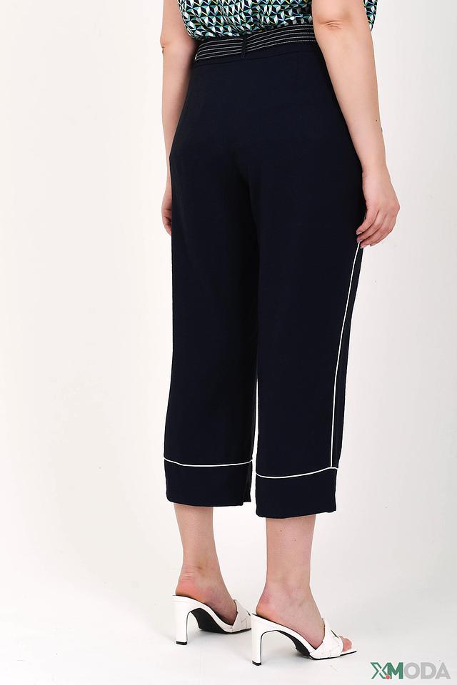 Стильные брюки Betty Barclay темно-синего цвета с контрастной белой полоской по бокам. Модель выполнена из мягкой вискозы с добавлением полиамида, обеспечивающего комфорт и износостойкость. Состав: вискоза 88%, полиамид 12%
